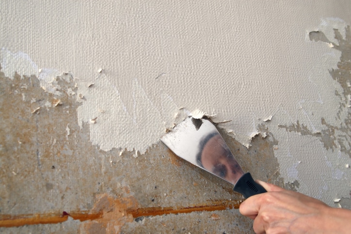 - Lorsque le plâtre est bien détrempé, décollez-le progressivement à la spatule.