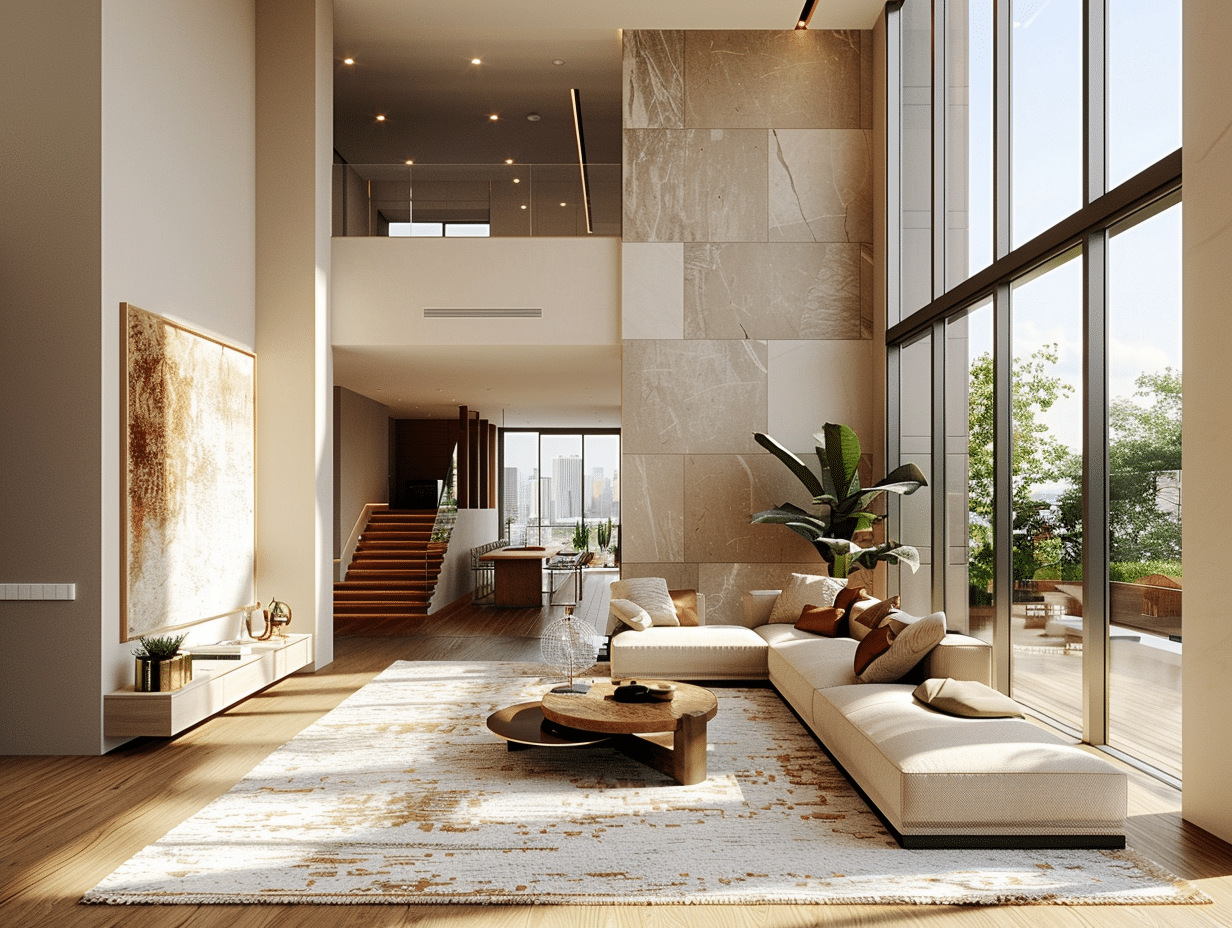 - Incorporation de tableaux, de tapis et de plantes pour une décoration raffinée