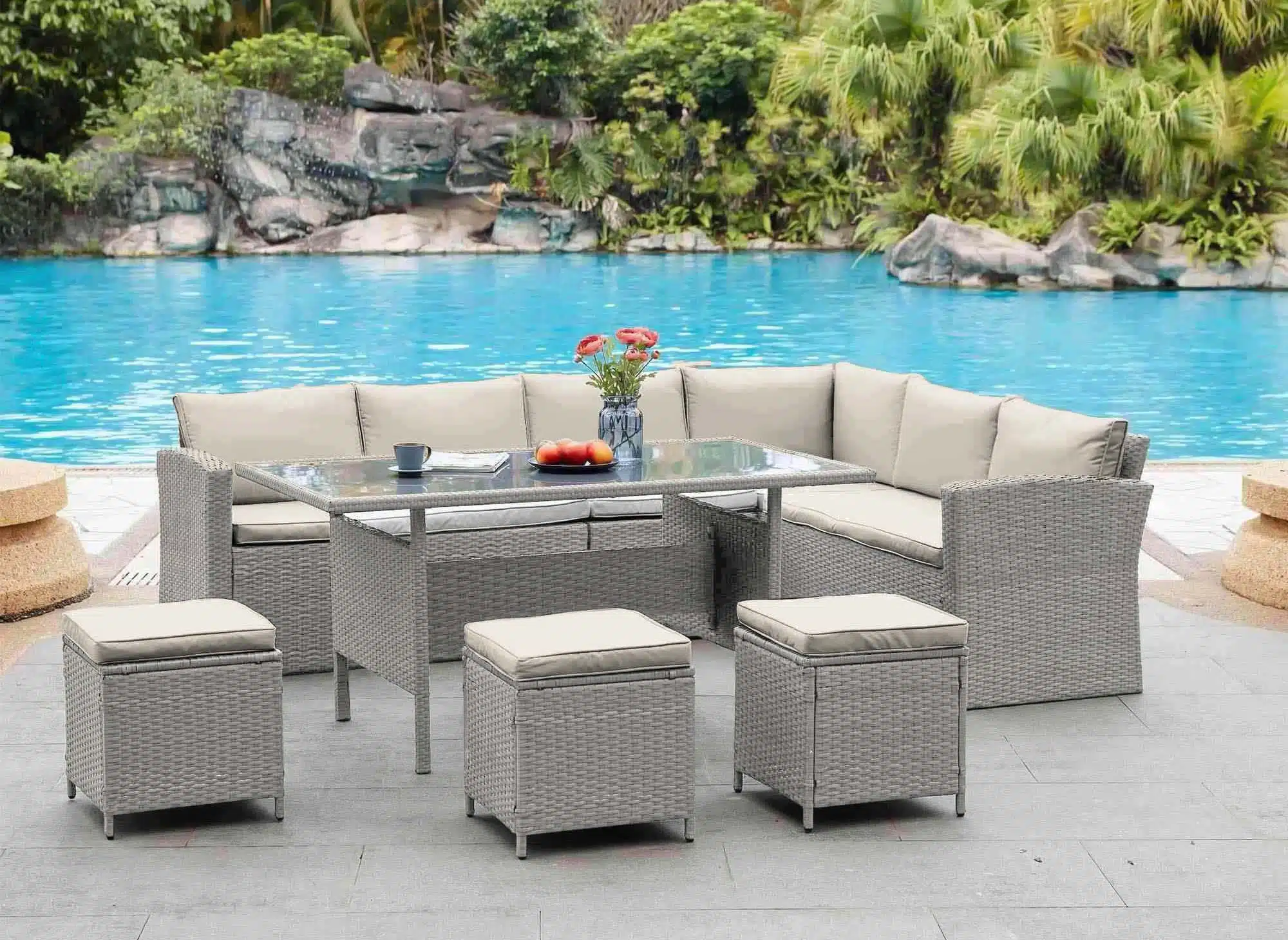 Les accessoires indispensables pour compléter son salon de jardin d’angle : coussins, parasols, etc