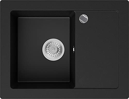 - Évier Primagran Auralum en granit ou acier inoxydable, plateau en verre noir, siphon automatique, égouttoir compact, traitement antibactérien, existe en plusieurs tailles (78 x 43 cm, 86 x 50 cm), versions encastrables ou classiques.