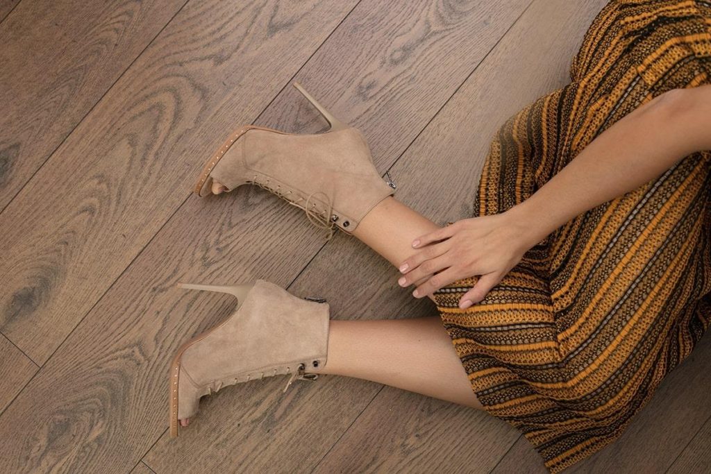 Pour le quotidien, associer une robe jaune à des bottines beiges ouvertes devant s’impose comme une évidence. Ces modèles peep toe trouvent leur place au printemps, à l’automne naissant ou lors des journées fraîches d’été. Pratiques, ils accompagnent les femmes actives du matin au soir, entre rendez-vous, école et yoga. Choisir du cuir naturel garantit une bonne respiration du pied et, grâce à la nuance beige, les jambes gagnent en longueur et en finesse.